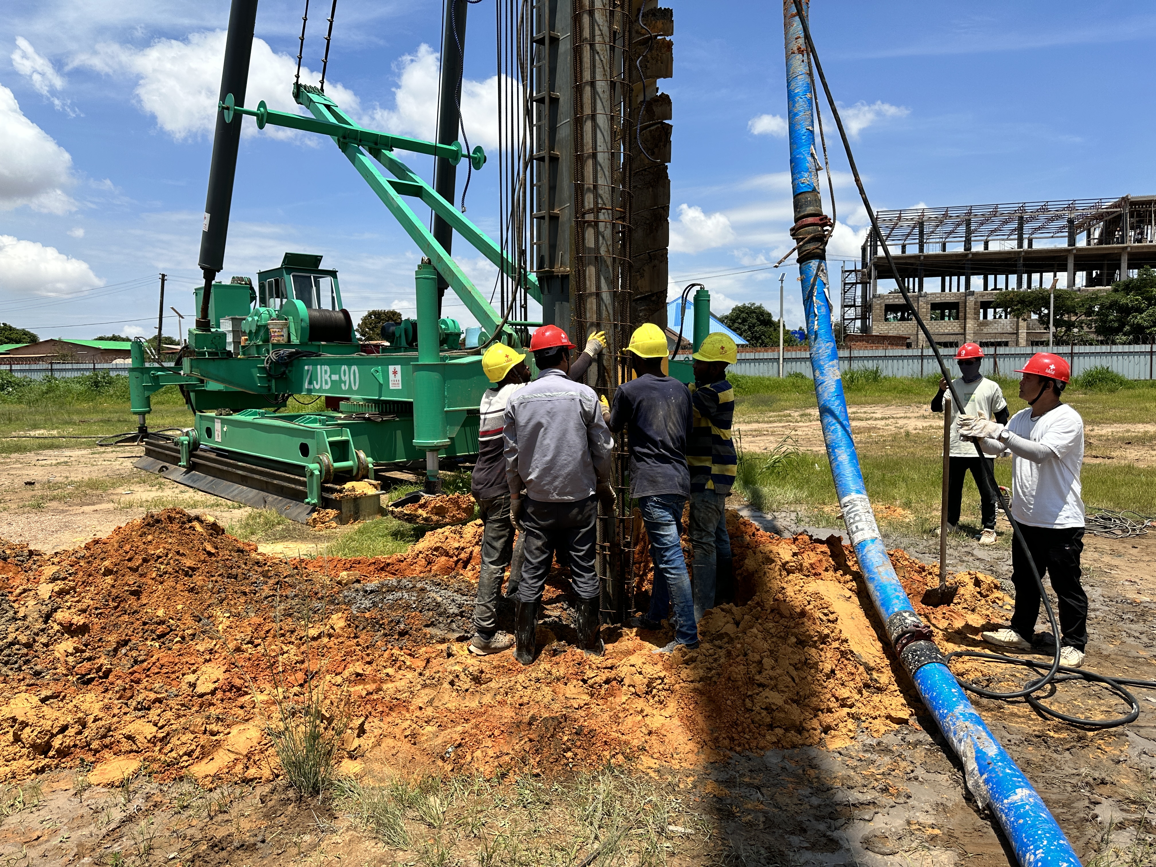 援剛果(金)職業(yè)技術(shù)培訓(xùn)中心項(xiàng)目是落實(shí)中非合作論壇北京峰會(huì)成果,“八大行動(dòng)”中能力建設(shè)的載體。項(xiàng)目建成后,對(duì)提高當(dāng)?shù)芈殬I(yè)培訓(xùn)水平、帶動(dòng)當(dāng)?shù)鼐蜆I(yè)、更好地建設(shè)國(guó)家職業(yè)培訓(xùn)體系具有重要作用。面對(duì)開工前期的重重困難,項(xiàng)目團(tuán)隊(duì)緊密團(tuán)結(jié),迎難而上,搶抓開局,協(xié)調(diào)人員、機(jī)具、材料有序入場(chǎng)施工。目前項(xiàng)目已順利進(jìn)入工程樁施工階段,在保證質(zhì)量至上、安全第一的前提下,項(xiàng)目全體成員鉚足干勁,加班加點(diǎn)搶進(jìn)度。