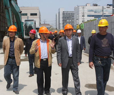 當(dāng)天上午,在上海分公司總經(jīng)理倪陵寶的帶領(lǐng)下,與會(huì)人員首先來到上海市北工業(yè)新區(qū),參觀了項(xiàng)目施工現(xiàn)場(chǎng),實(shí)地察看了項(xiàng)目的生產(chǎn)工作,并在現(xiàn)場(chǎng)召開了項(xiàng)目座談會(huì)。會(huì)上,倪陵寶向與會(huì)代表介紹了上海市北項(xiàng)目的總體概況以及市北項(xiàng)目的工程質(zhì)量管理、科技創(chuàng)新等工作。在聽取匯報(bào)后,仇天青總裁對(duì)市北新區(qū)項(xiàng)目的施工管理給予了高度評(píng)價(jià),他希望上海分公司能夠繼續(xù)發(fā)揚(yáng)優(yōu)良作風(fēng),在上海區(qū)域中心市場(chǎng)有一個(gè)更高層次的突破。座談會(huì)上,項(xiàng)目部代表李愛平也對(duì)項(xiàng)目的生產(chǎn)工作作了匯報(bào)。