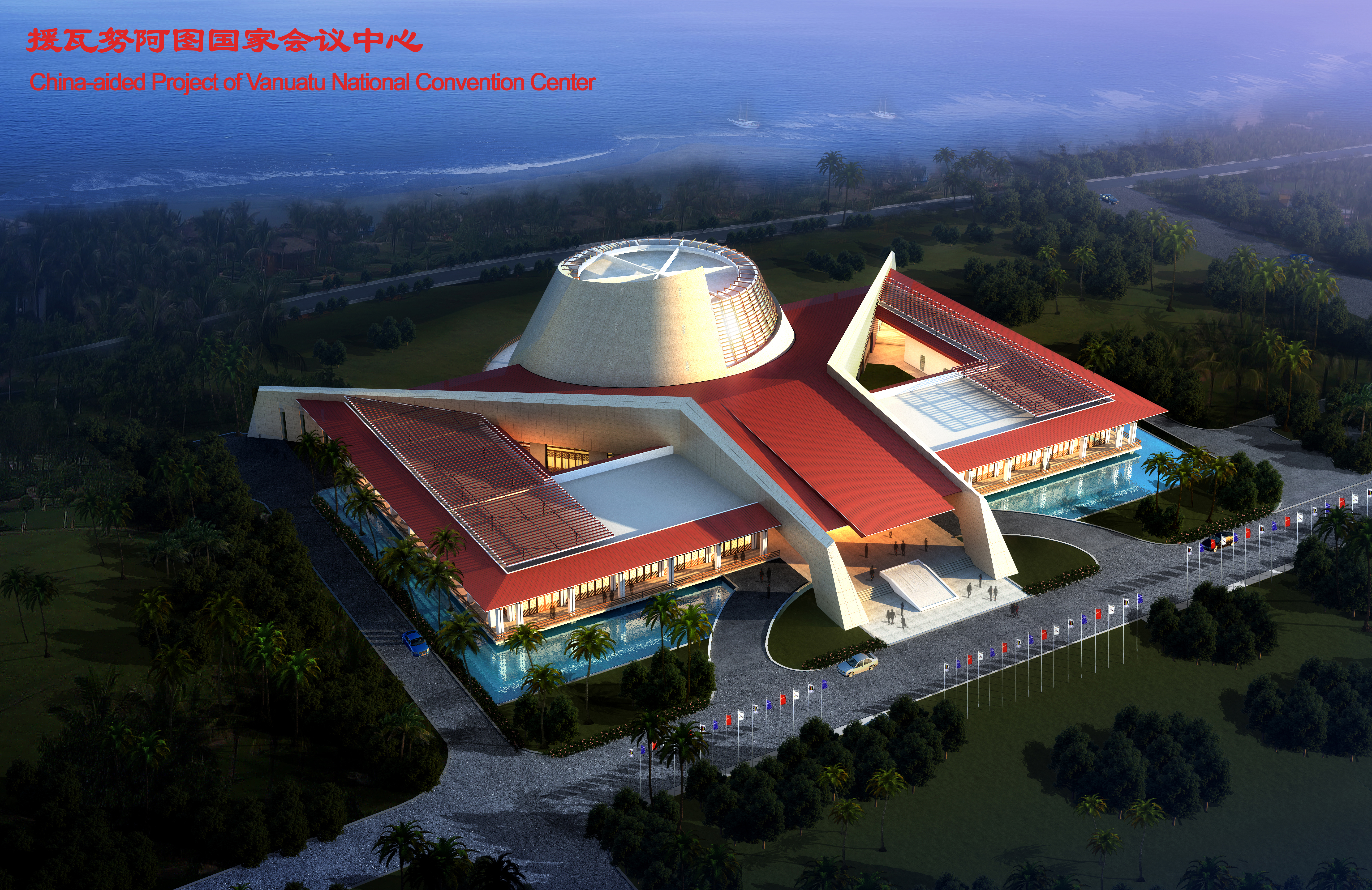 The Vanuatu National Convention Center is the largest foreign aid project in Vanuatu. With a total construction area of 6574 square meters, the building includes exhibit space, meeting space and restaurant/retail space.