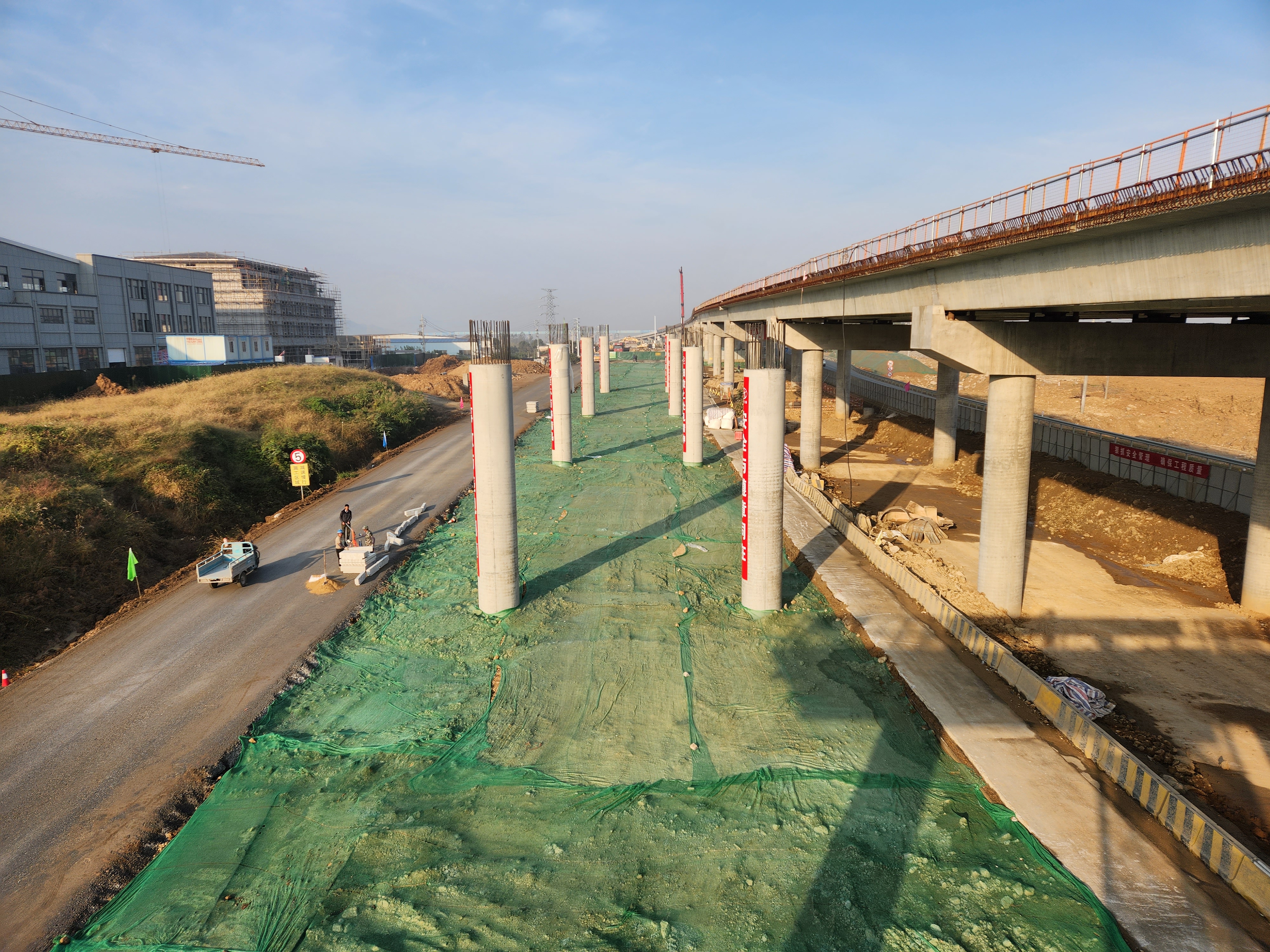 騰龍大道智慧快速路二期工程是構(gòu)筑常州“中環(huán)”的重點(diǎn)項(xiàng)目。項(xiàng)目建成后,對(duì)于推動(dòng)形成網(wǎng)格化快速路網(wǎng)體系,發(fā)揮系統(tǒng)功能,實(shí)現(xiàn)立體交通,加強(qiáng)城市南北聯(lián)系方面具有重要作用。江蘇交工承建的騰龍大道7標(biāo)項(xiàng)目全長(zhǎng)約4.5千米。目前,全體參建人員有條不紊地進(jìn)行墩柱施工,項(xiàng)目施工進(jìn)度步步推進(jìn)。項(xiàng)目累計(jì)完成鉆孔灌注樁392根,完成承臺(tái)8座,完成鋼筋加工場(chǎng)、拌和站、預(yù)制梁場(chǎng)改建,其中預(yù)制梁場(chǎng)已完成驗(yàn)收。